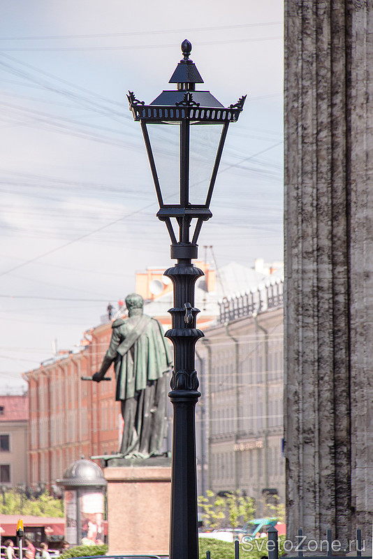 В преддверии 310-летия Петербурга «Ленсвет» установил 18 художественных фонарей на площади около Казанского собора. Были выбраны фонари в стилистике петровских времен, точно такие же установлены в Александровском саду.