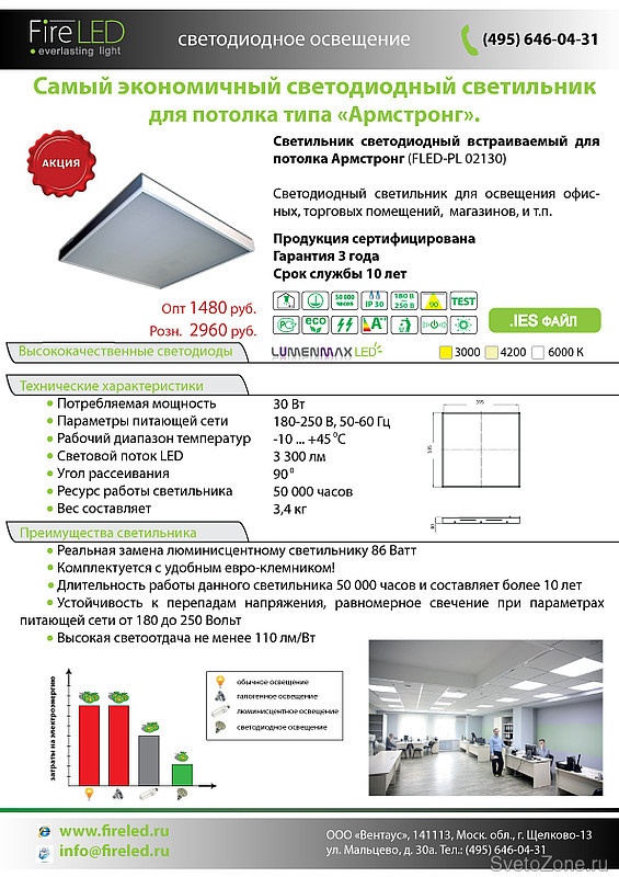 В акции участвует самый экономичный светильник для потолка типа «Армстронг»