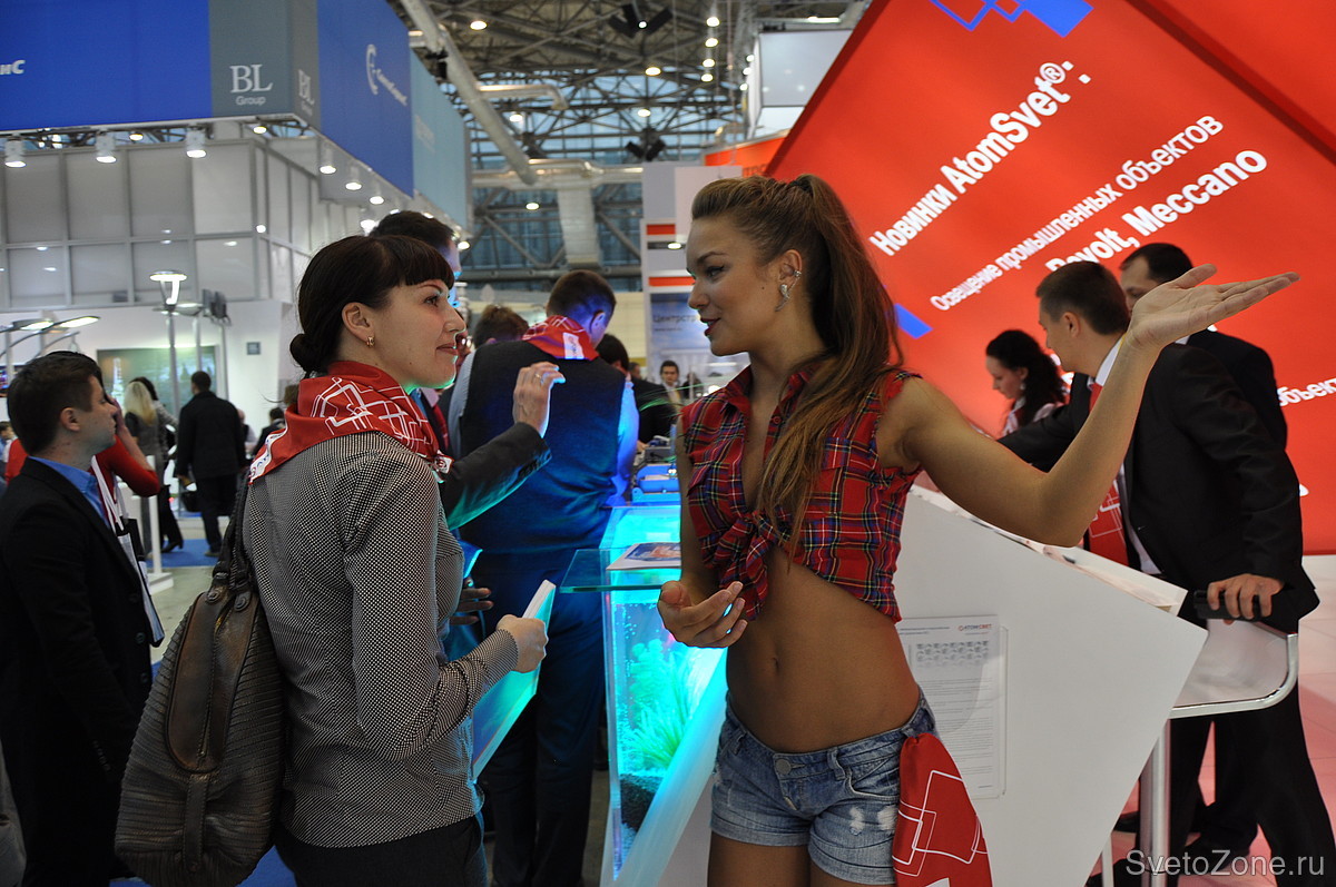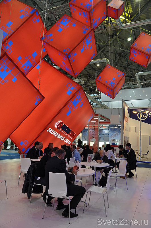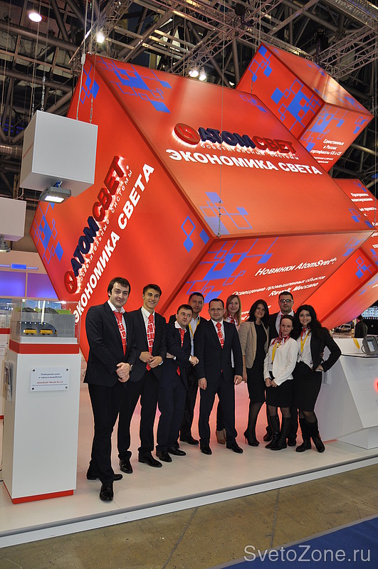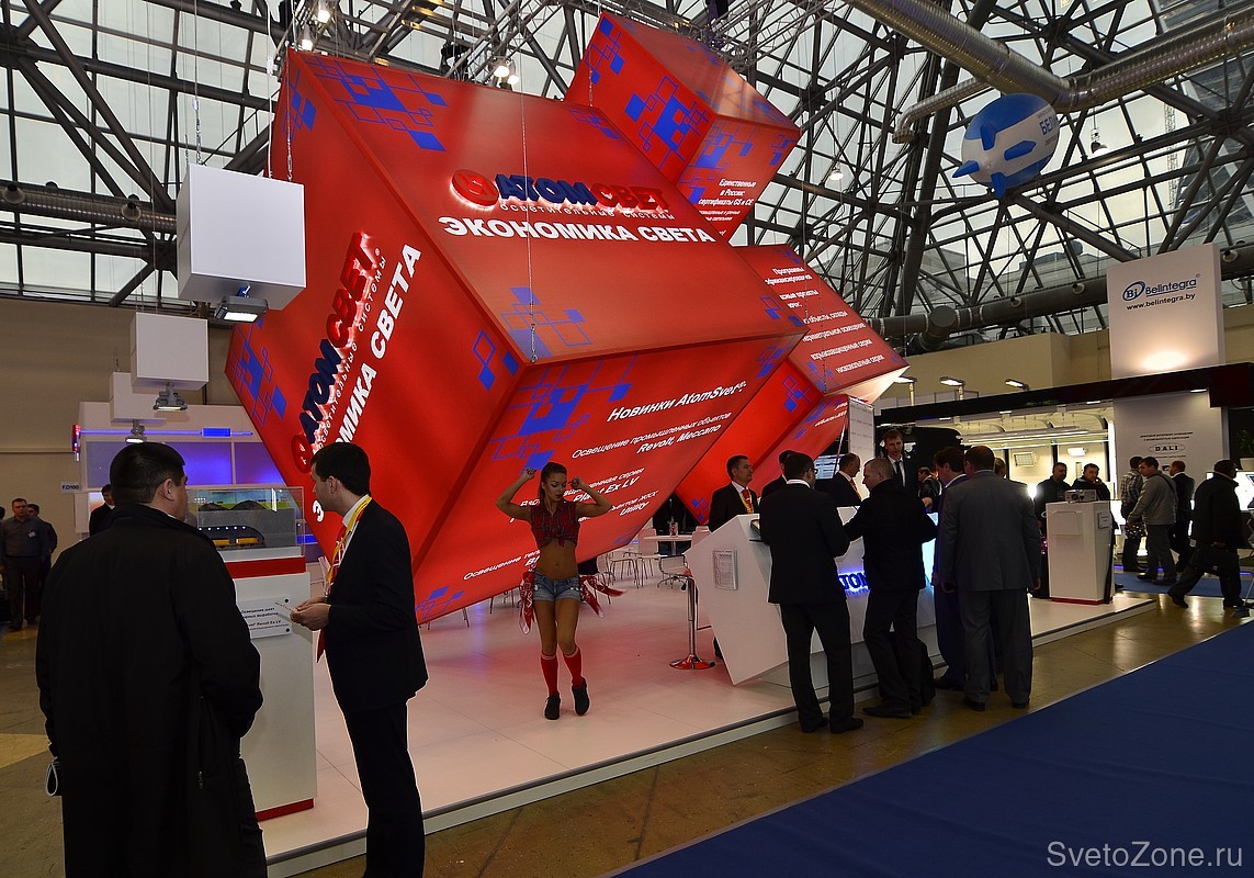 На этот раз посетителей выставки удивил необычный дизайн стенда «АтомСвет», состоящий из огромных подвешенных красных кубов. Неординарный подход к созданию стенда воплотил в жизнь настоящий арт-объект, отмеченный многими посетителями выставки. Яркий и динамичный промо-персонал, а также возможность испытать продукцию компании на прочность превратили выставку в зажигательный интерактив. С помощью архитектурных и ландшафтных макетов «АтомСвет», единственная в России компания-производитель светодиодных светильников, обладающая сертификатами GS и CE, представила последние разработки для различных отраслей применения: