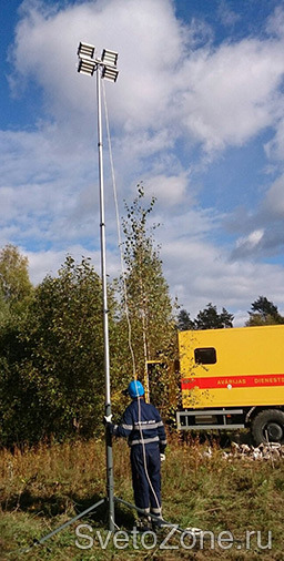 Светодиодные прожекторы на пневматических переносных мачтах освещения
