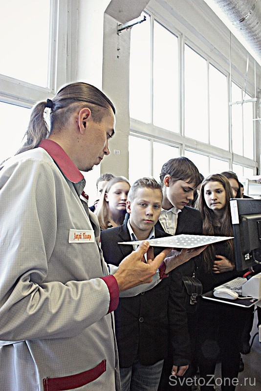 В эти дни более 120 школьников посетят компанию, созданную на базе старейшего российского производителя светотехники, – легендарного объединения «Светлана». Ребята увидят полный цикл производства светодиодов SVETLED® и светодиодной светотехники SvetaLED® – от выращивания полупроводниковых гетероструктур до массового производства готовых приборов, смогут понаблюдать за работой новейшего автоматического оборудования и задать вопросы интеллектуальной элите предприятия.