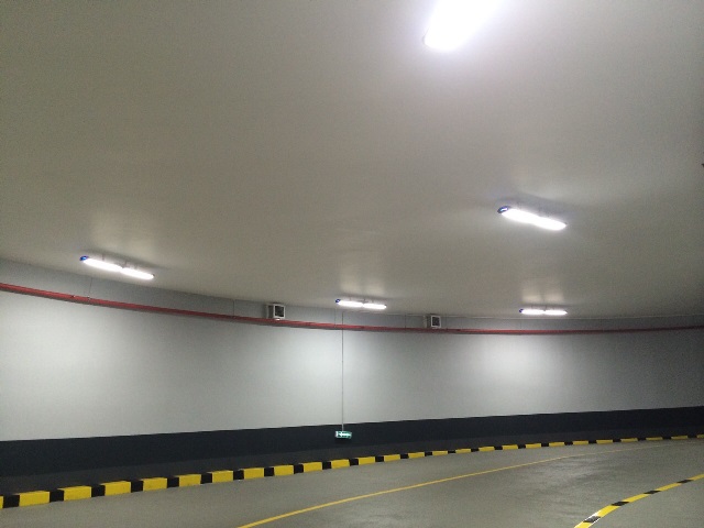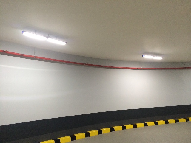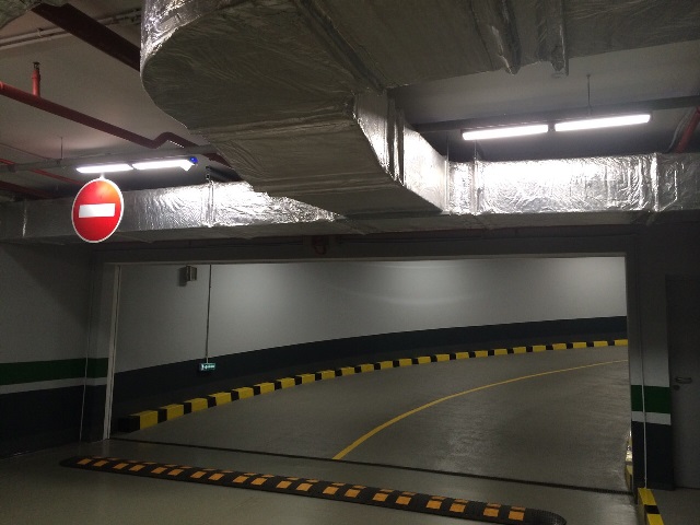 Освещение подземного 3-этажного паркинга бизнес-центра реализовано светильниками завода Lampyris.