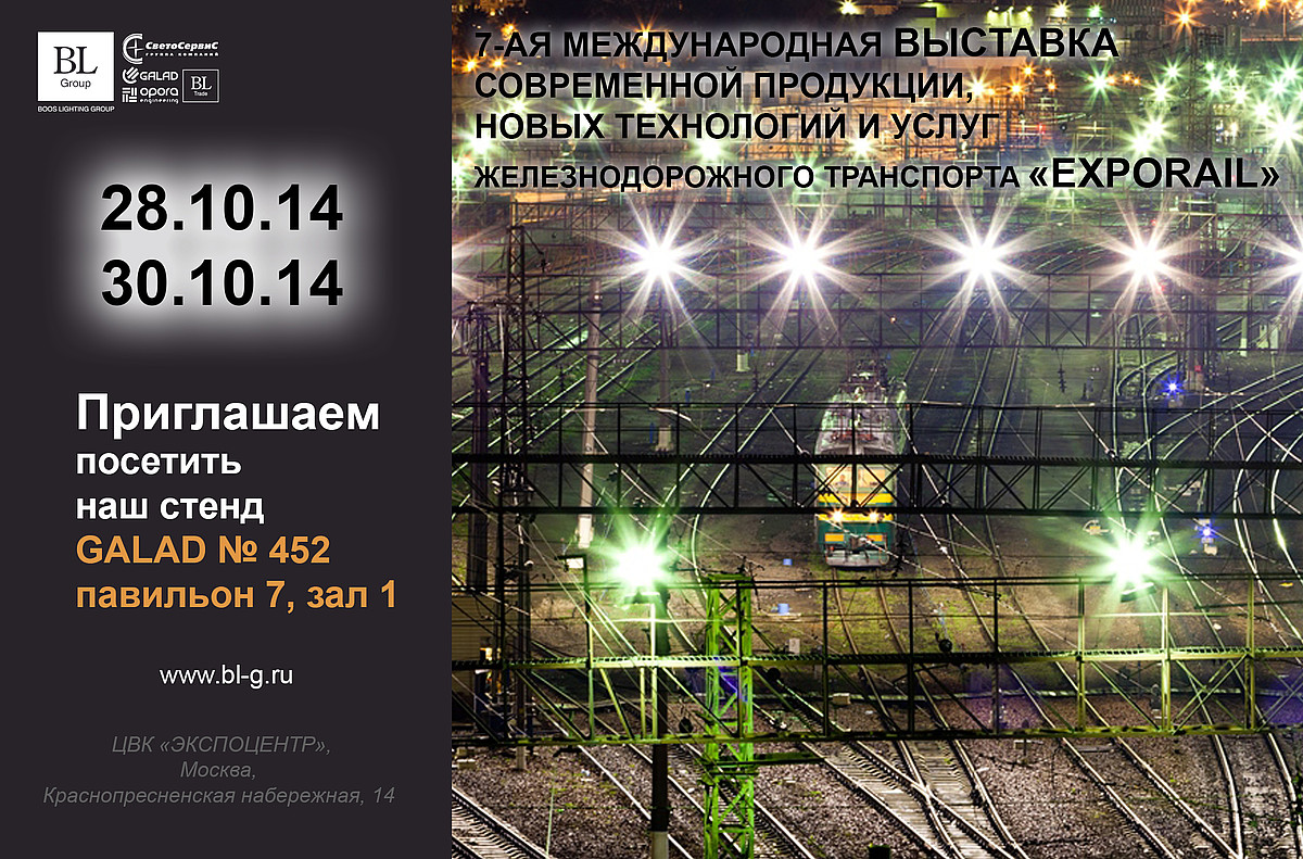 ТМ GALAD от BL GROUP, представят на выставке серию светильников на базе светодиодов для местного освещения салонов пассажирских вагонов. Вагонные светильники GALAD уже на протяжении 50 лет применяются в советском и российском железнодорожном транспорте. Ими оборудовано более 30 000 вагонов. За полувековой период эксплуатации эти осветительные приборы зарекомендовали себя как беспроигрышное решение, которое соответствует запросам самых взыскательных потребителей.