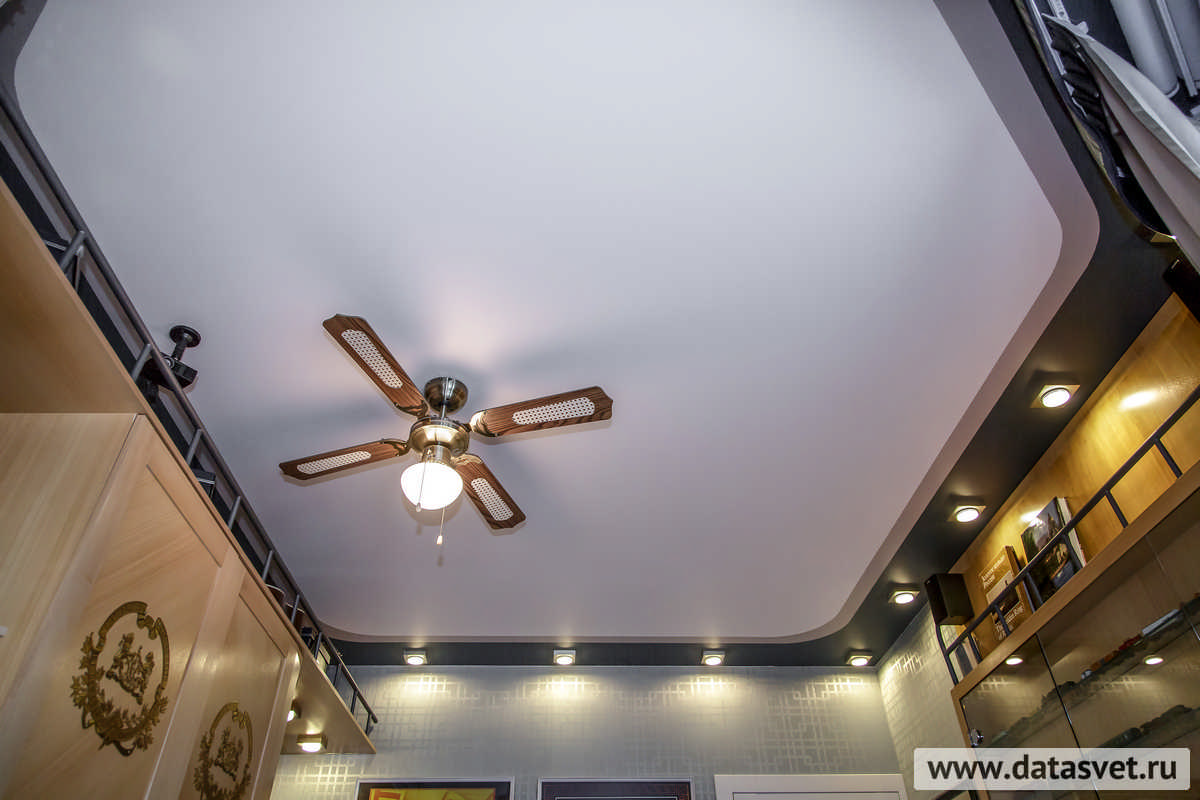Помимо светильника-вентилятора, освещающего одновременно и рабочую, и декоративную зону комнаты – стеклянный стол с удивительным макетом, - в комнате был необходим зональный свет. Именно его и обеспечили семнадцать светильников MicroLineEnergySaving, выполненные в техно-стиле из высококачественного металла с шероховатым матовым серебристым покрытием. Дизайн данной модели универсален (и кроме того идеально вписывается в избранную деко-концепцию), что позволило разместить светильники:
