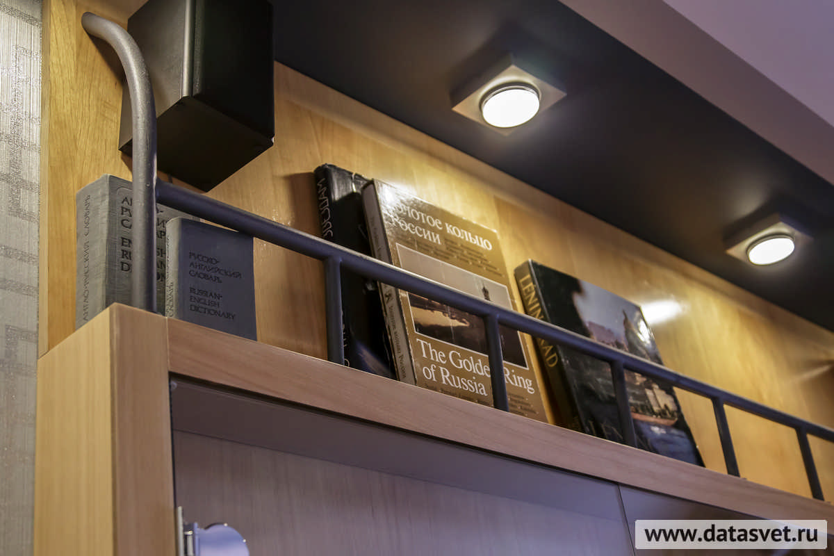 Участвующая в проекте от компании «Дата Свет» новая «телезвезда» – особый настенный (а также потолочный) накладной мебельный светильник MicroLineEnergySaving. Данная модель создана лидером в своей сфере – немецкой фирмой Paulmann, – и выбрана дизайнером, как наиболее отвечающая задуманной идее.