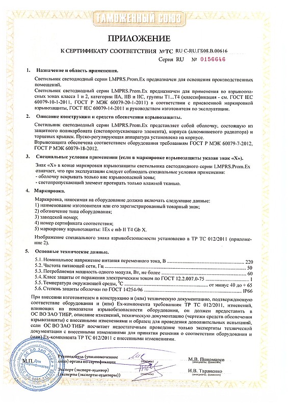 Завод Lampyris получил сертификат соответствия Таможенного союза на светильники во взрывозащищенном исполнении