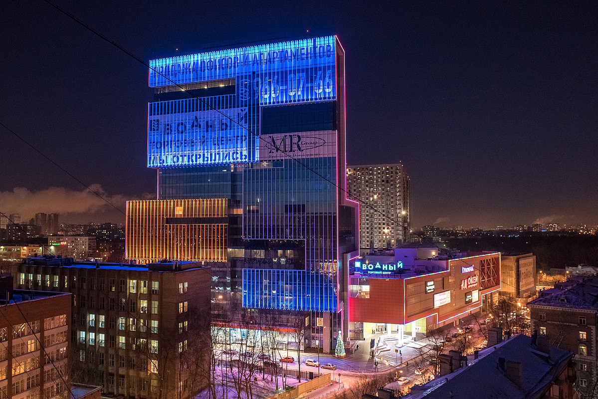 «Многофункциональный комплекс «Водный» является первым проектом нового редевелопмента промышленных зон, курс на который взяло столичное правительство, – говорит Евгения Старкова, директор по маркетингу компании MR Group. – Чтобы соответствовать заявленной высокой планке, мы учли в комплексе всё: интересную концепцию проекта, которая совмещает торговую, офисную и жилую составляющие, уникальное архитектурное решение, благоустройство территории с парковой зоной в непосредственной близости, входные группы и сопутствующую комфортной жизни и работы инфраструктуру. И, конечно же, нам необходимо использовать только наиболее современные и высокотехнологичные устройства, выделяющие нас на рынке. Фасадное освещение Philips Color Kinetics и внутреннее оформление Philips Luminous Textile – это те решения, которые позволят нам сделать МФК «Водный» наиболее успешным, инновационным и в буквальном смысле ярким объектом недвижимости Москвы».