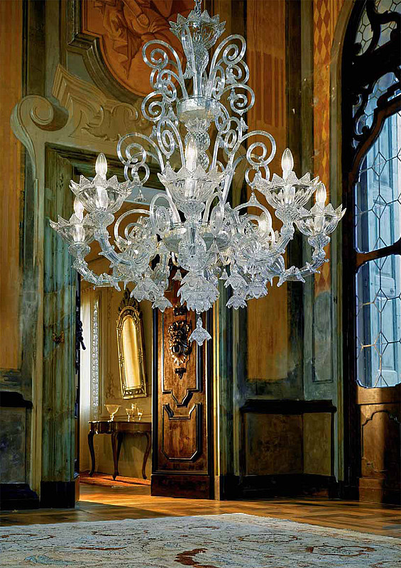 Знаменитое венецианское стекло уже несколько столетий используется в люстрах и светильниках, придавая им особую способность концентрировать и рассеивать свет. Граненное, цветное и зеркальное стекло – все разновидности стекла, соединялись в удивительные конструкции, изображающие фантастические цветы и изысканные арабески.