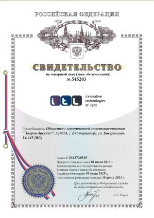 Рады сообщить что бренд «ITL innovative technologies of light» теперь является официально зарегистрированным Товарным знаком. Это означает, что за нами, как за единоличными владельцами закреплены все права на использование этого обозначения.
