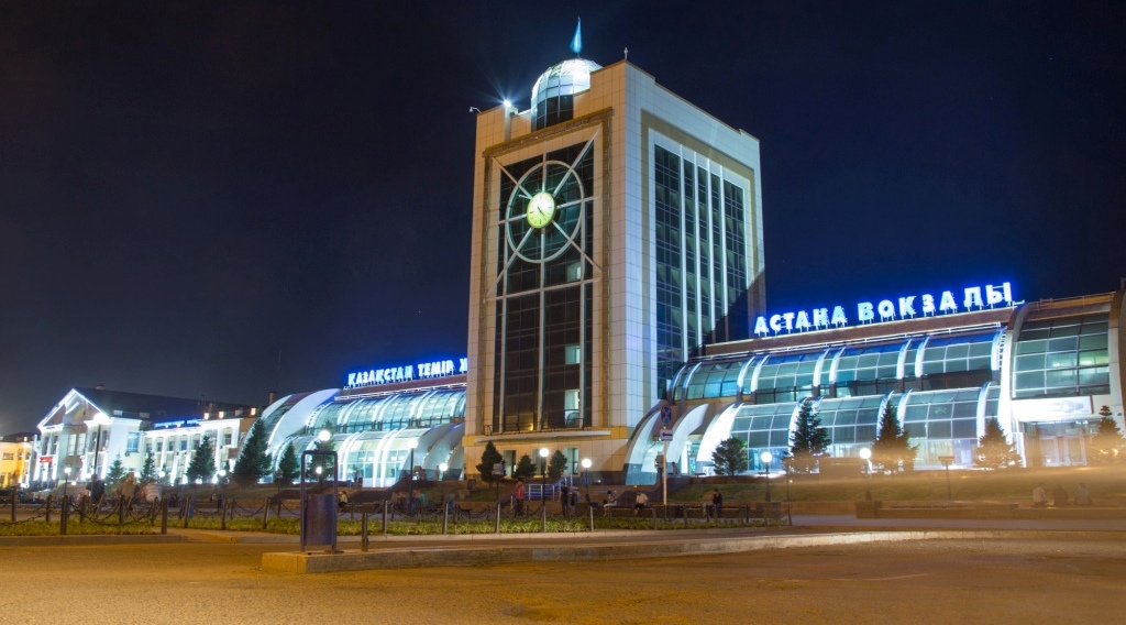 Железнодорожный вокзал в Астане, столице Казахстана, один из самых интересных во всей Республике. Его уникальность заключается в том, что рядом со зданием вокзала советского времени, которое сейчас отремонтировано и превращено в пригородный терминал, расположено главное ультрасовремененное здание вокзала, из стекла и бетона.