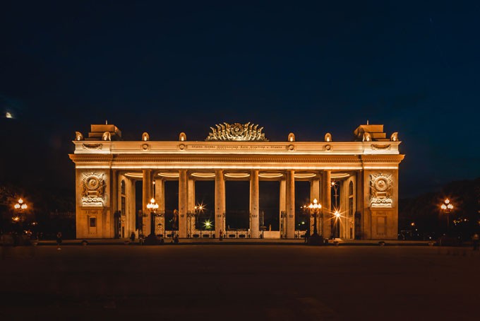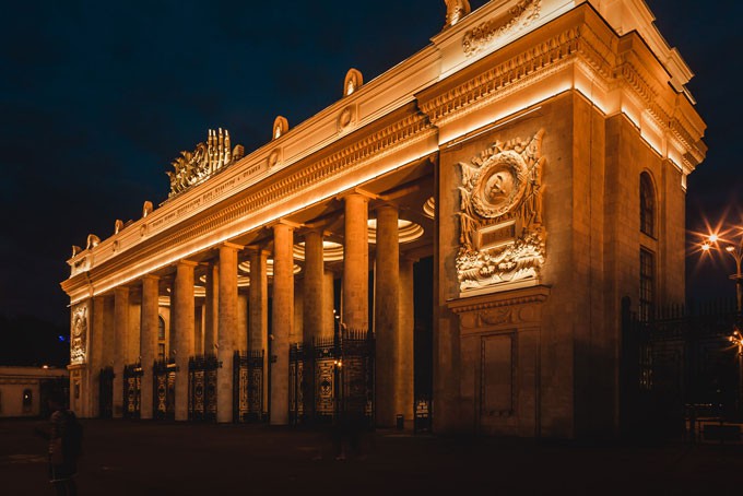 Знакомый с детства каждому москвичу вид центрального входа в Парк Культуры и Отдыха им. А.М.Горького стал еще более впечатляющим в вечернее время благодаря новой системе архитектурного освещения IntiLED. Система была смонтирована во время масштабной реконструкции и реставрации этого знакового для Москвы и всей России объекта.