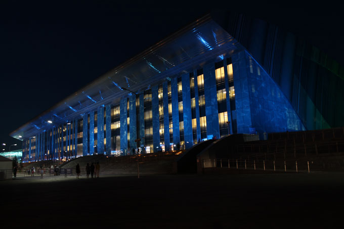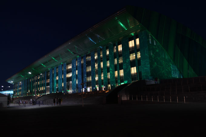 24 июля 2015 г. к открытию Чемпионата мира по водным видам спорта в Казани было завершено архитектурно-художественное освещение главной площадки - Дворца водных видов спорта. Компания IntiLED была выбрана поставщиком светового оборудования, т.к. смогла предложить индивидуальное световое решение под проект: WGB-прожекторы IntiSTARK со светодиодами белого 5000К, зеленого и синего цветов. В качестве места установки 150-ваттных прожекторов были выбраны опоры вокруг Дворца. Правильное расположение и точная юстировка световых приборов позволили добиться равномерного, насыщенного заливающего освещения фасадов. Управление светильниками осуществляется на базе протокола DMX.
