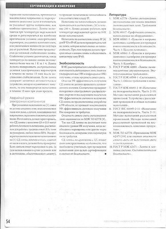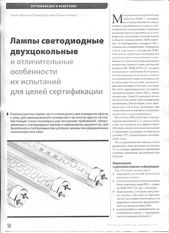 Смотрите статью "Лампы светодиодные двухцокольные и отличительные особенности их испытаний для целей сертификации" в приложениях.