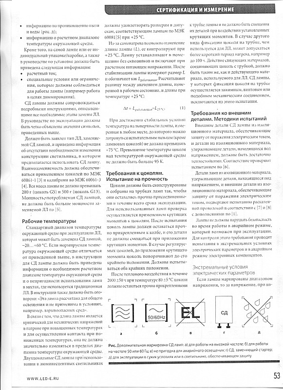 Из-за ограниченного объема статьи рассмотрим лишь некоторые положения МЭК 62776, в которых приводятся требования и методы испытаний, специфичные для СД ламп.