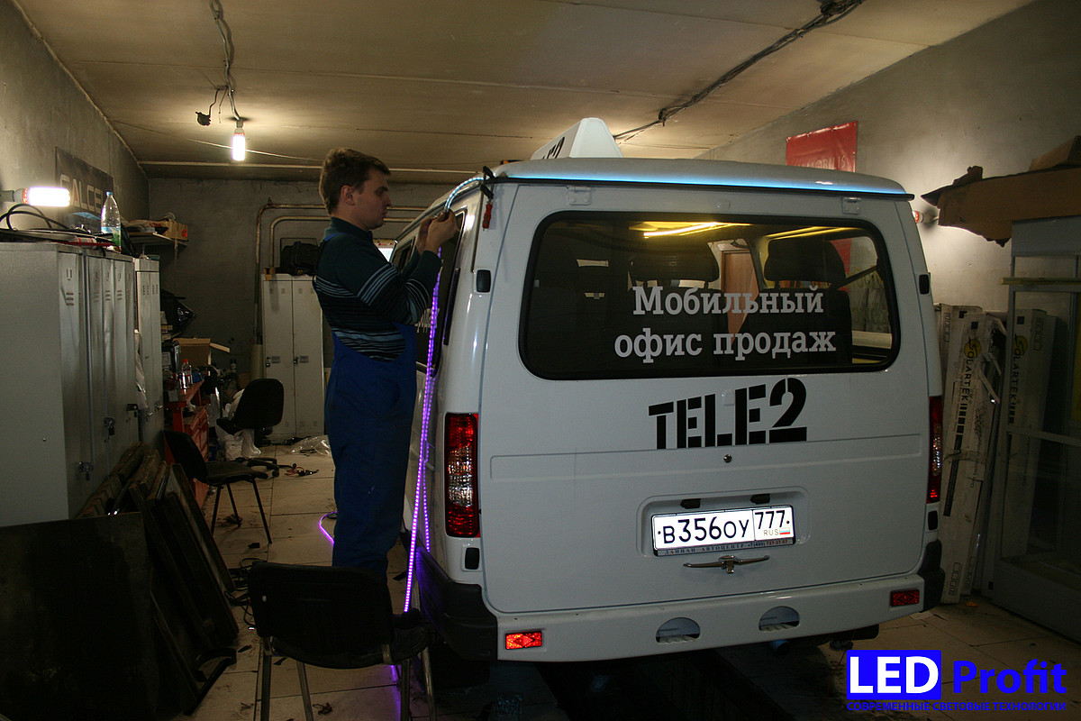 Выполнена светодиодная подсветка мобильных офисов продаж компании ТЕЛЕ2