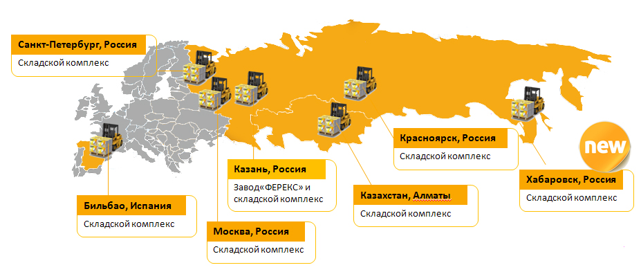 Российский производитель светодиодных светильников ООО «Торговый дом «ФЕРЕКС» (Р. Татарстан) уже имеет 4 складских комплекса в крупнейших городах России, а также склады в Казахстане и в Испании. Новый склад в Хабаровске будет организован совместно с официальным представителем завода в Дальневосточном регионе – компанией «Восток Групп».