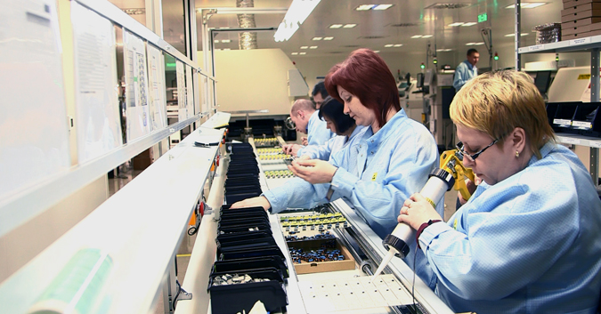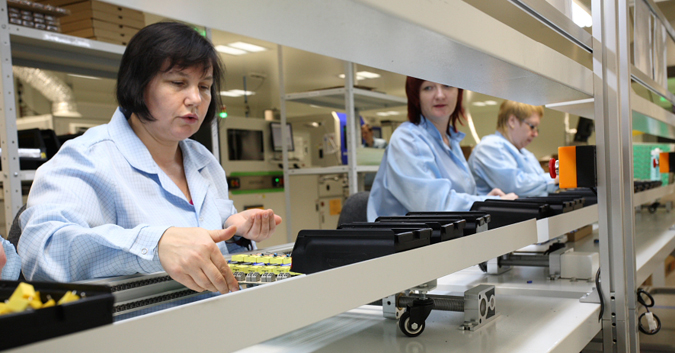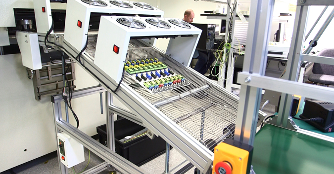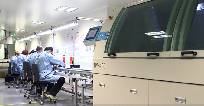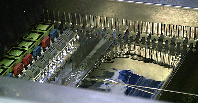 В частности, производительность участка основных видов драйверов увеличилась более чем в два раза. Производительность линии пайки волной драйверов составляет до 100 тыс. драйверов в месяц. Повышение качества обеспечивается за счет автоматизации процесса пайки. А сам процесс достаточно прост. Платы, установленные на транспортере, подвергаются флюсованию и предварительному нагреву, исключающему тепловой удар на этапе пайки. Затем плата проходит над волной припоя. На последнем этапе производится визуальный контроль каждого драйвера сотрудниками участка.