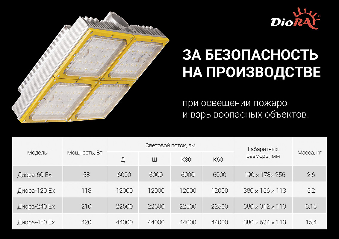 Корпус из анодированного алюминия, стекло из стабилизированного поликарбоната и светодиоды с оптическими линзами обеспечивают высокую степень защиты. Надежность светильника подтверждена сертификатом взрывозащиты Таможенного союза.