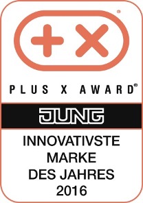 Как эксперт отрасли, компания JUNG стала лидером в номинации «Самый инновационный бренд» категории «Электрика и медиатехника», а также была удостоена звания «Марка отрасли 2016» - данной наградой жюри Plus X Awards отмечает бренды, наиболее популярные у специалистов отрасли. Опрос более 4600 экспертов сферы технологий, дизайна, торговли и системной интеграции показал высокий уровень уважения отрасли к бренду JUNG.