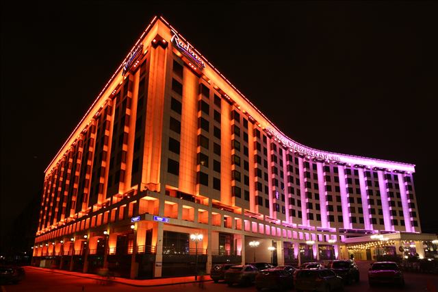 Еще совсем недавно одним из препятствий для развития иностранного туризма и международной деловой активности в Москве было недостаточное количество гостиниц с мировым уровнем сервиса. Сегодня ситуация изменилась, и в столице России присутствуют все самые знаменитые известные сетевые отели. Гостиница «Radisson Славянская» на фоне многих недавно построенных отелей может считаться «ветераном», ведь ее открытие состоялось еще в 1991 году. В условиях жесткой конкуренции даже гостиницам, принадлежащим такому знаменитому бренду как «Radisson», нужно неустанно работать над обновлением имиджа, повышением привлекательности для гостей Москвы. Отель «Radisson Славянская» является одним из опорных элементов архитектурного ансамбля, который окончательно сложился уже в постсоветские годы вокруг площади Европы. С учетом всех этих факторов владельцем гостиницы было принято решение радикально поменять вечерний «наряд» отеля, то есть, заменить старое освещение фасада на новое – яркое и праздничное.