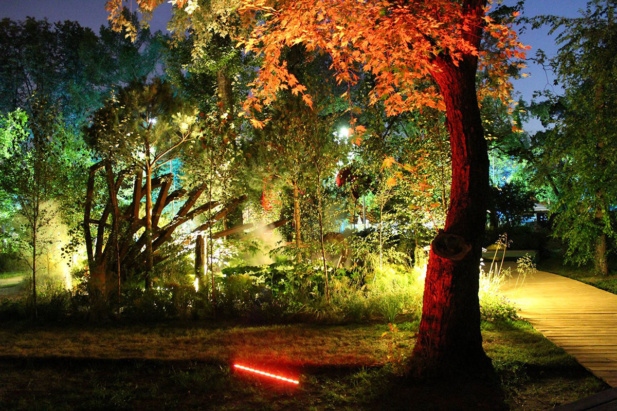 В этом году посетители фестиваля также смогли оценить красоту и важность ландшафтного освещения. Партнеры фестиваля - LiDS Lighting Design School совместно с IntiLED - преобразили сады в вечернее время.