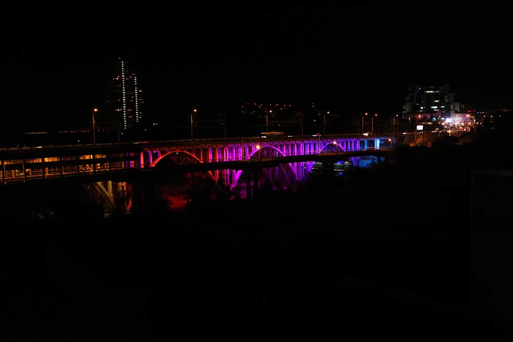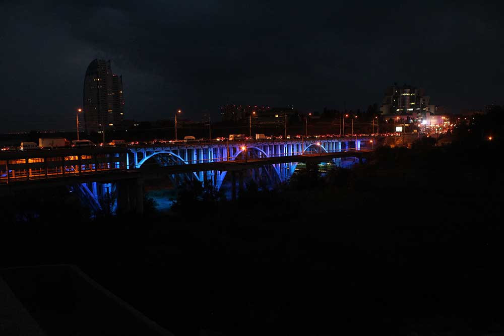 Плавное изменение цвета освещения в темное время суток смотрится очень эффектно. Мост уже стал достопримечательностью Волгограда.