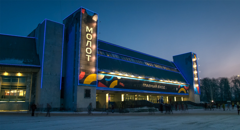 По заказу Государственного краевого автономного учреждения «Центр спортивной подготовки Пермского края» в январе 2018 года компания ДЮРЭЙ реализовала проект освещения фасада Универсального дворца спорта «Молот».