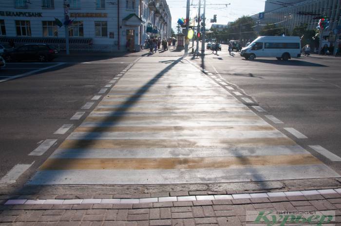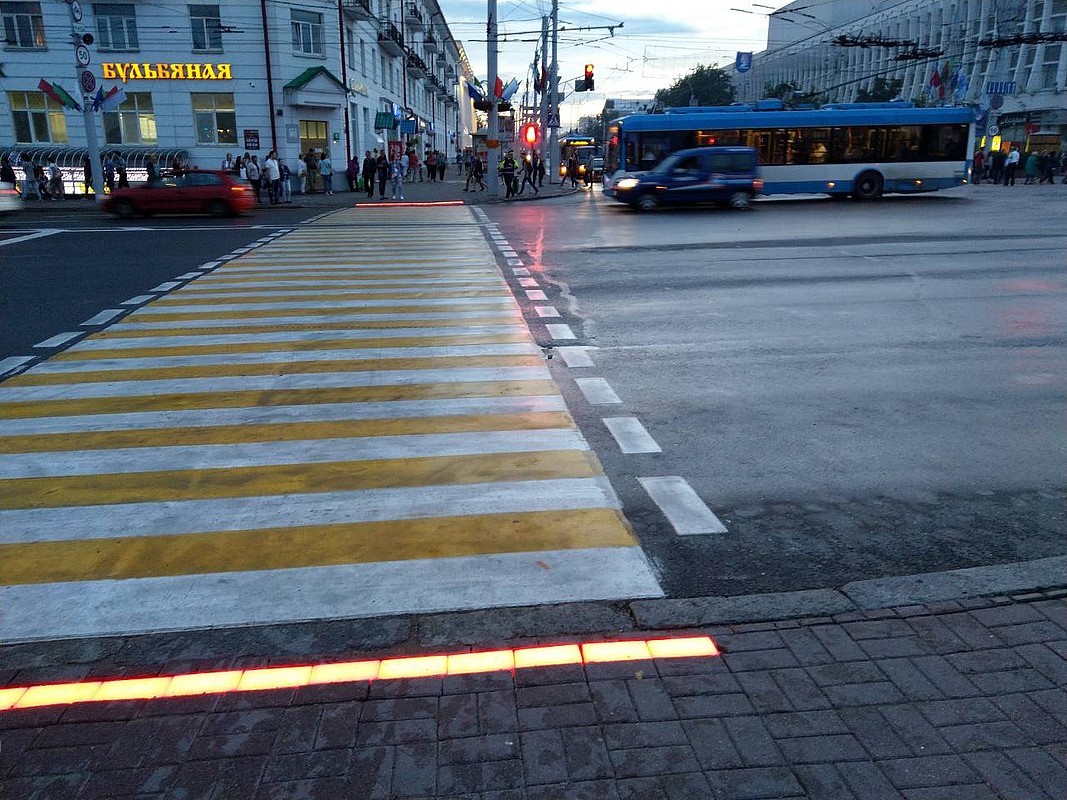 Светодиодная брусчатка появилась в Витебске на пешеходном переходе через улицу Ленина от Летнего амфитеатра к кафе «Бульбяная», ее смонтировали перед «Славянским базаром».