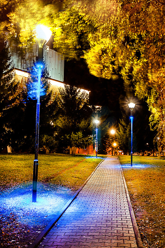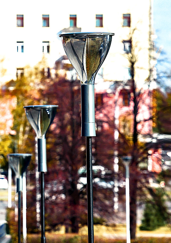 Инновационные уличные фонари с единым дизайном опоры и верхних светильников преображают внешний вид площади с помощью палитры световых эффектов, придающих ее архитектуре уникальный облик, и создают неповторимую атмосферу и в дневное, и в темное время суток. Благодаря строгому, минималистичному дизайну светильники отлично вписываются в архитектурную концепцию площади и не нарушают ее единого современного стиля. В темное время суток фонари не только реализуют свою основную задачу по освещению, но и выполняют декоративную функцию – подсвечиваются синим цветом, создавая яркие акценты. А яркий белый свет превосходного качества, гарантирующий зрительный комфорт, обеспечивает более комфортную безопасную среду и подчеркивает красоту зданий на площади.