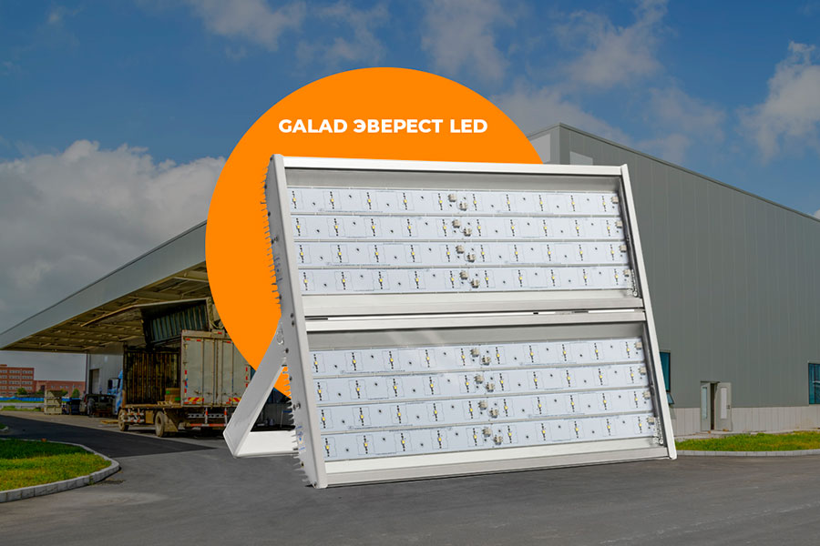GALAD Эверест LED - доступное и эффективное решение для предприятий самых различных отраслей. Светильники подходят для освещения больших открытых пространств, а также для внутреннего освещения промышленных объектов. Специально разработанный и запатентованный корпус светильника, одновременно выполняющий роль радиатора, позволил нам создать исполнения мощностью от 80 Вт для низких цехов и до 1200 Вт для аэропортов и других больших территорий и высот.