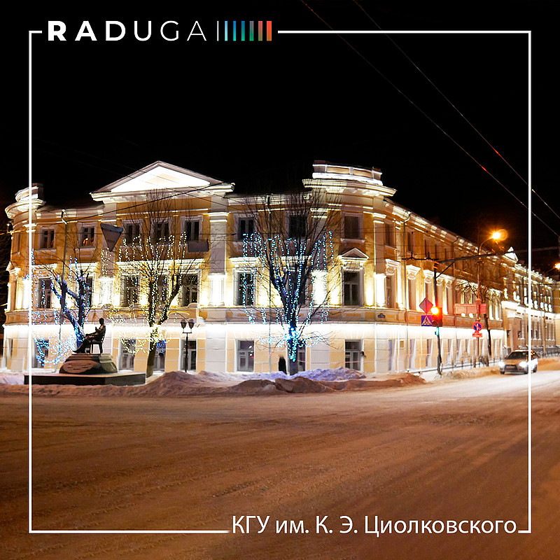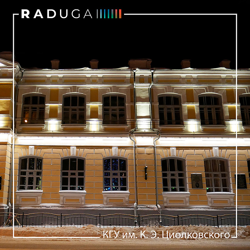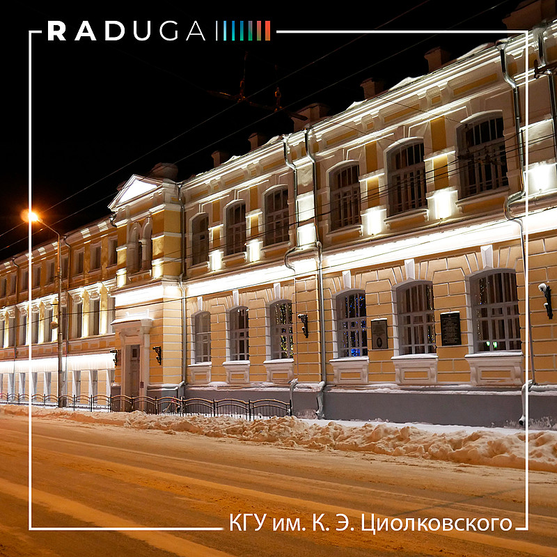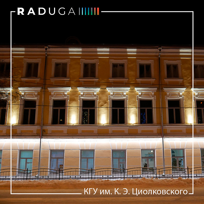 1 февраля завершился проект архитектурного освещения фасада Института истории и права Калужского государственного университета имени Константина Эдуардовича Циолковского – старейшего центра высшего исторического образования в Калужской области.Столь важный государственный проект доверили профессиональной светотехнической компании «D7», находящейся в списке лучших светотехнических компаний в России. Для создания оригинального светового оформления были использованы светодиодные прожекторы Signum-18 и линейные светильники Lumen U-12.