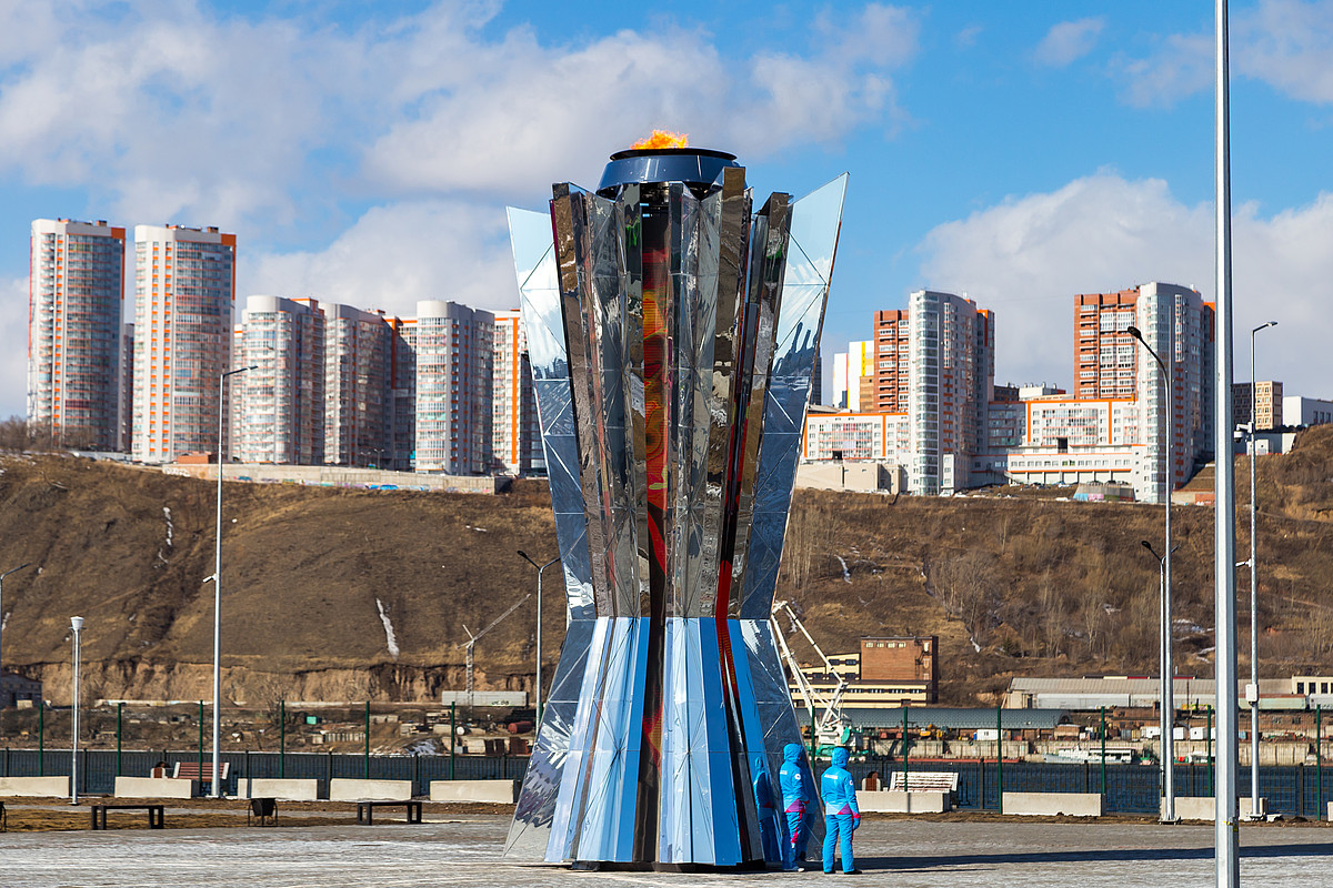 Центральным объектом в день открытия универсиады стала чаша огня. Над реализацией проекта создания чаши огня универсиады работал коллектив представителей нескольких компаний: Артстиль – разработка дизайна чаши; Стальмонтаж – создание металлоконструкций; Красноярсккрайгаз – подводка газа к чаше; ОКБ АРТ Ledvizor – создание и монтаж медиаэкрана.