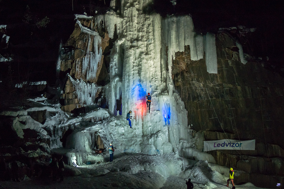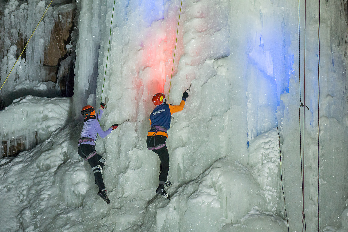 Ledvizor уже более 6 лет предоставляет цветные светильники для ежегодного первенства по лёдолазанию Яркий Лёд.