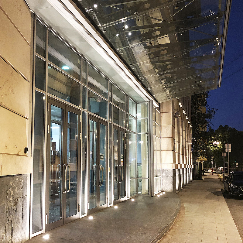 Руководствуясь этими принципами, на здании Росимущества было восстановлено фасадное освещение с заменой всех устаревших, разбитых и вышедших из строя грунтовых светильников.
