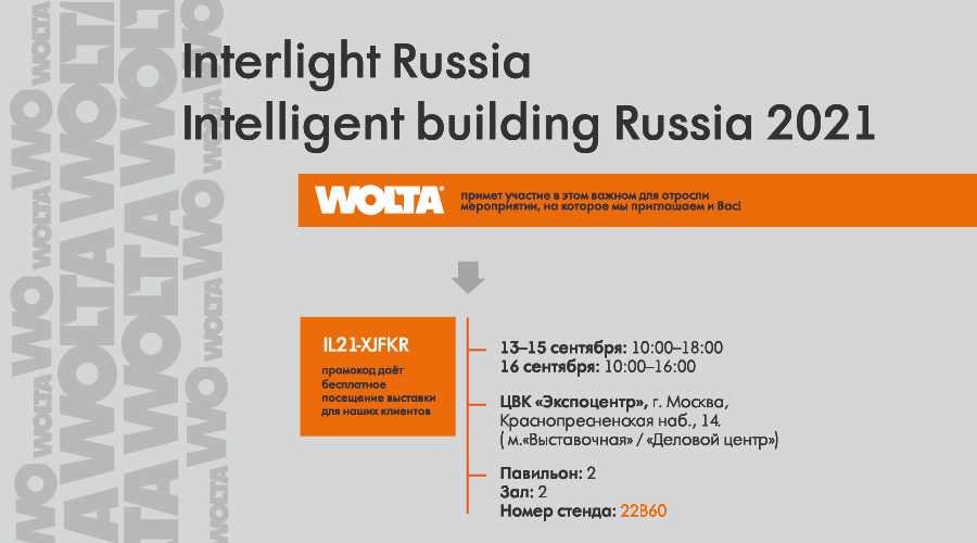 На нашем стенде будут представлены новые суббренды, направления светотехники и новинки светотехнической продукции. В рамках выставки Вы сможете задать все интересующие вопросы, пообщаться с руководством и сотрудниками компании, а также просто интересно и с пользой провести время. В этом году мы решили подготовить для всех клиентов и партнёров нечто особенное и впечатляющее, поэтому выставка в этом году точно станет особенной для компании WOLTA. Интересная программа, яркие презентации и многое другое!