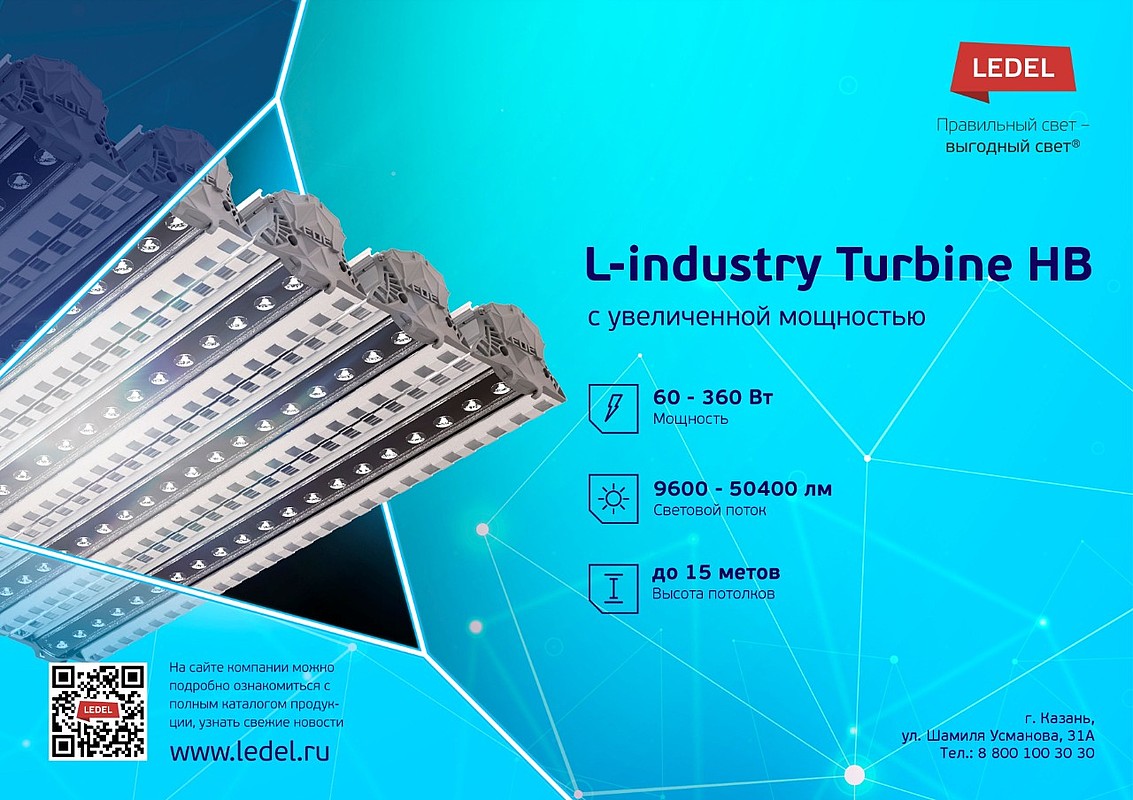 Наш классический светильник для высоких пролётов серии L-industry Turbine HB стал ещё мощнее. Мы увеличили количество модулей, чтобы эффективно освещать площади любых сложностей и масштабов.