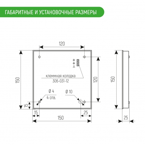 Габаритные размеры 150 х 150 х 25 мм
