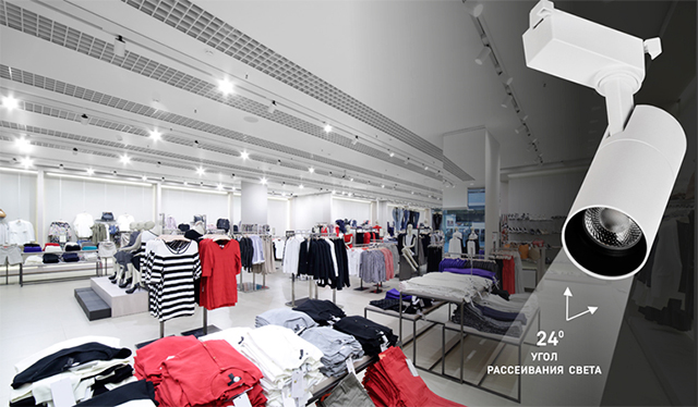 - COB-диоды и высококачественная вторичная оптика обеспечивают концентрированное акцентное освещение с узким пучком света.