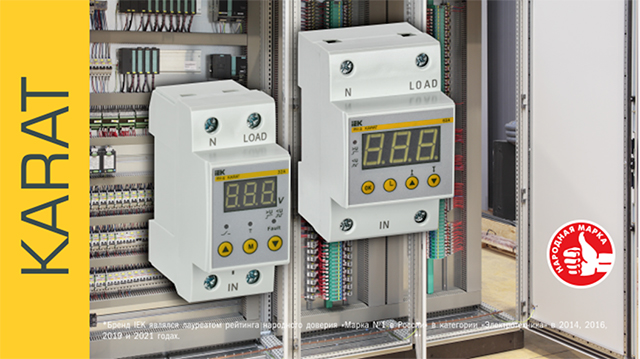 Новинки поступили в продажу! Однофазные реле напряжения (РН-Д) и реле напряжения и тока (РНТ-Д) KARAT IEK® используются для автоматического выключения питания при выходе напряжения или тока за допустимые пределы. Электронная плата анализирует параметры и выводит их на дисплей. Пределы возможно регулировать самостоятельно с помощью простого кнопочного меню.