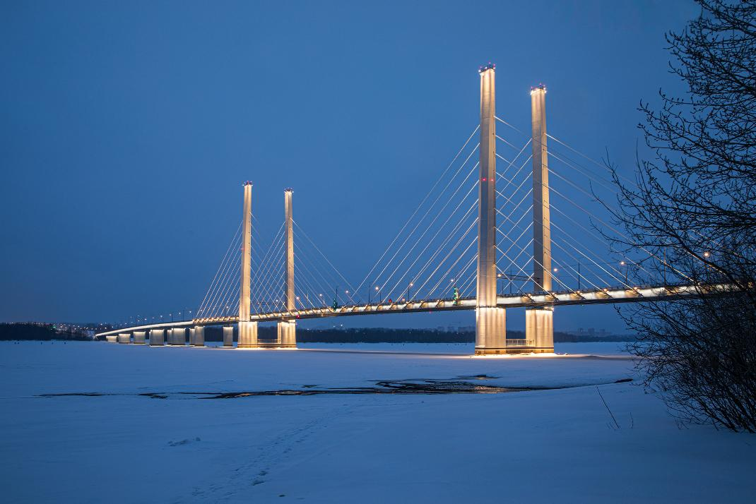 Новый Архангельский мост в Череповце через реку Шексна - самый длинный в Вологодской области протяжённостью 1,132 км. Это - один из крупнейших проектов транспортной инфраструктуры Вологодской области, способствующий ее развитию и расширению логистических связей с другими регионами страны. Мост улучшил для горожан доступность к Рыбинскому водохранилищу, а также к Череповецкому металлургическому комбинату и АО «Апатит».