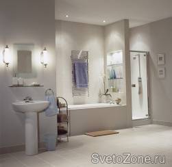 Все светильники, предназначенные для использования в ванных комнатах, должны обладать определенным уровнем защиты (IP), который указывается на упаковке. Уровень IP определяет безопасное местоположение светильника в ванной.
