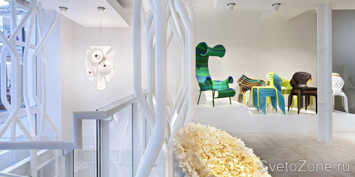 В результате сотрудничества, компаниям Flos и Moroso, представляющим лучшие образцы итальянского промышленного дизайна, удалось гармонично совместить в пространстве одного шоу-рума два, до сих пор обособленных друг от друга, направления – свет и мебель, что не должно оставить равнодушными настоящих ценителей дизайна!