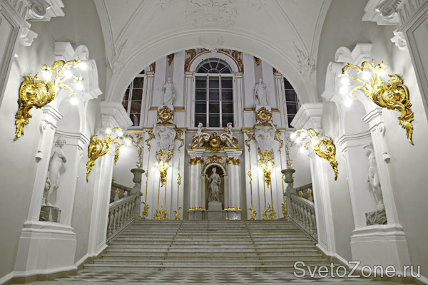 В Георгиевском зале Зимнего дворца компания Philips произвела замену стандартных ламп накаливания на светодиодные Novallure и галогеновые EcoClassic30. Они обладают высоким уровнем цветопередачи, излучают яркий искрящийся свет, и благодаря своей свечевидной форме наилучшим образом вписываются в интерьер зала, не нарушая внешний вид люстр. Использование новых ламп уменьшит энергопотребление на 45%, также значительно увеличится срок службы ламп: EcoClassic 30 служат в 2 раза дольше ламп накаливания, а Novallure – в 20 раз дольше.