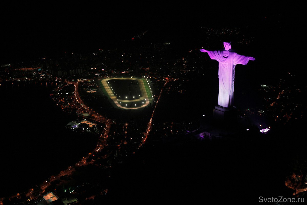 Архитектурное световое решение, выполненное при использовании 300 светодиодных прожекторов подчеркивает и дополняет неповторимый облик одной из главных достопримечательностей Рио-де-Жанейро. Статуя высотой 38 метров является не только символом Христианства, но и самого города.
