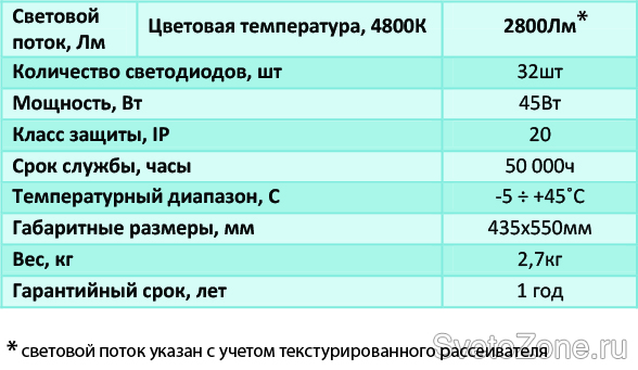 Технические характеристики светодиодной системы «ОСНОВА»