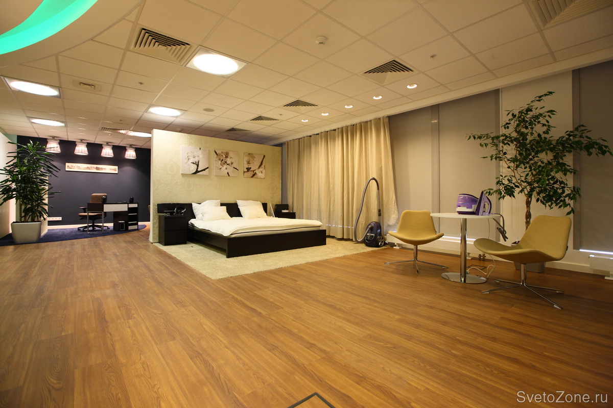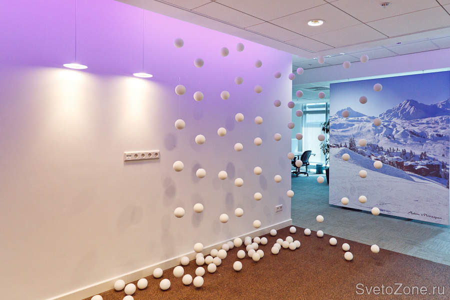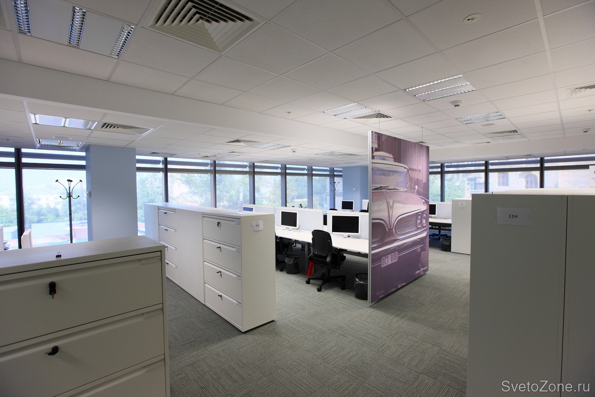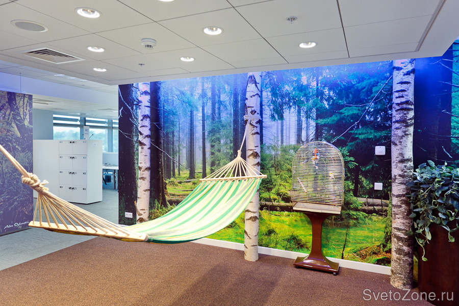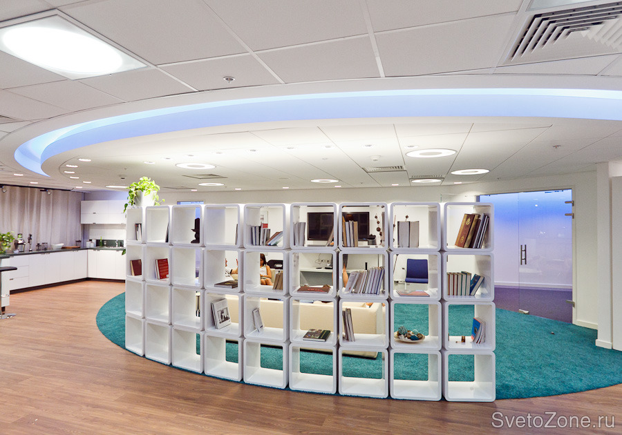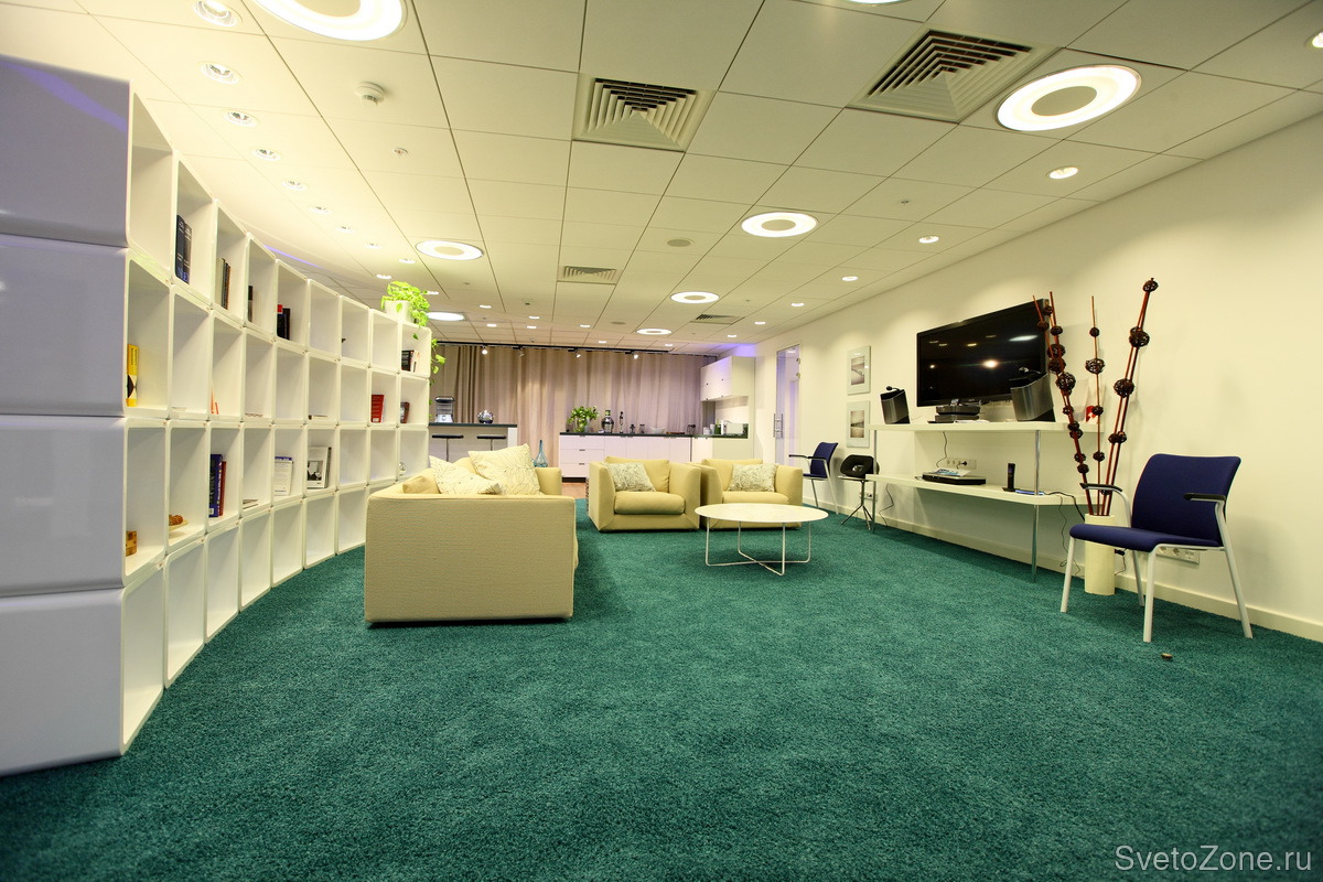 Основы концепции инновационного рабочего пространства – гибкость, мобильность и активное взаимодействие между людьми. Каждый сотрудник может выбирать рабочее место в зависимости от планов на день. Офис поделен на зоны для индивидуальной и совместной работы, отдыха, встреч и совещаний, и каждая из них обладает уникальным дизайном и световым решением.