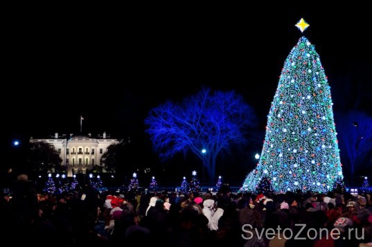 Уже 49 лет подряд национальные новогодние ёлки в США переливаются праздничными огнями GE Lighting. В этом году главная ёлка украшена более чем 10 000 светодиодами. Создать уникальный праздничный дизайн специалистам удалось при помощи использования новых современных технологий. Инновационное решение, соответствующее стандарту ENERGY STAR, наиболее наглядно демонстрирует многообразие возможностей использования светодиодов и создает волшебный эффект мерцающих снежинок.