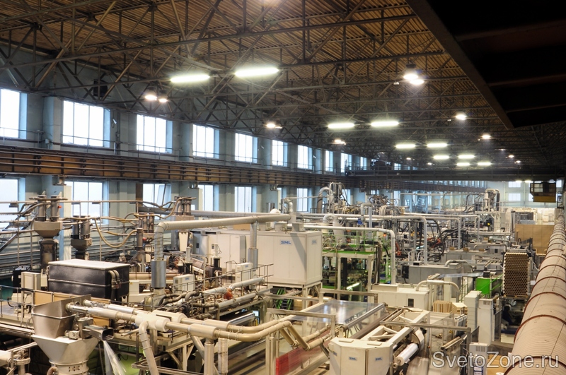 Всего в результате модернизации освещения было установлено более 170 светильников. Для основного освещения были выбраны светильники для высоких пролетов серии Cabana с металлогалогенными лампами HPI-Plus 400 Вт, которые позволяют увеличить световой поток на 30%. Также были использованы люминесцентные светильники с аварийным блоком TCW216 . В рамках данного проекта производственное и монтажное подразделения RS Group осуществили сборку щитов освещения и прокладку кабельных трасс.