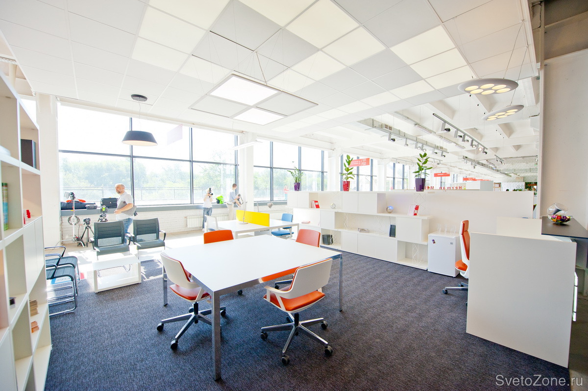 На выставке Office Next Moscow 2013 компании Philips и Saint-Gobain Ecophon представили офисное решение Soundlight Comfort Ceiling. Инновационные акустические потолочные панели со встроенными светодиодами позволяют поддерживать оптимальную освещенность офиса и минимизировать уровень шума, создавая комфортную атмосферу для сотрудников в офисах с открытой планировкой.