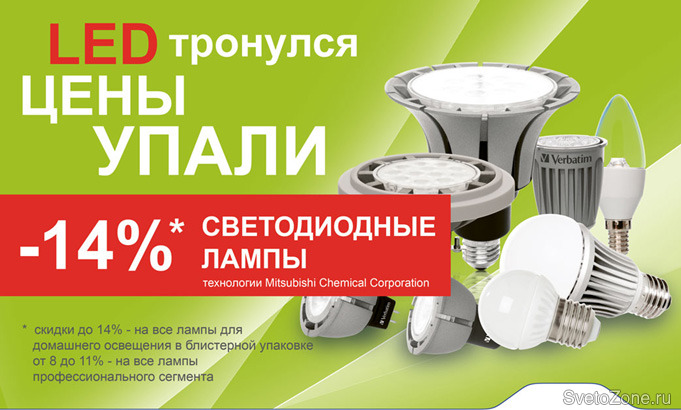 Несмотря на текущую тенденцию колебаний валютного курса и, следовательно, повышения цен на импортную продукцию в России, рост тарифов ЖКХ, сегмент светодиодного освещения начал снижение цен. Впервые компания Verbatim объявляет скидки от 8 до 14% на всю свою светодиодную продукцию.